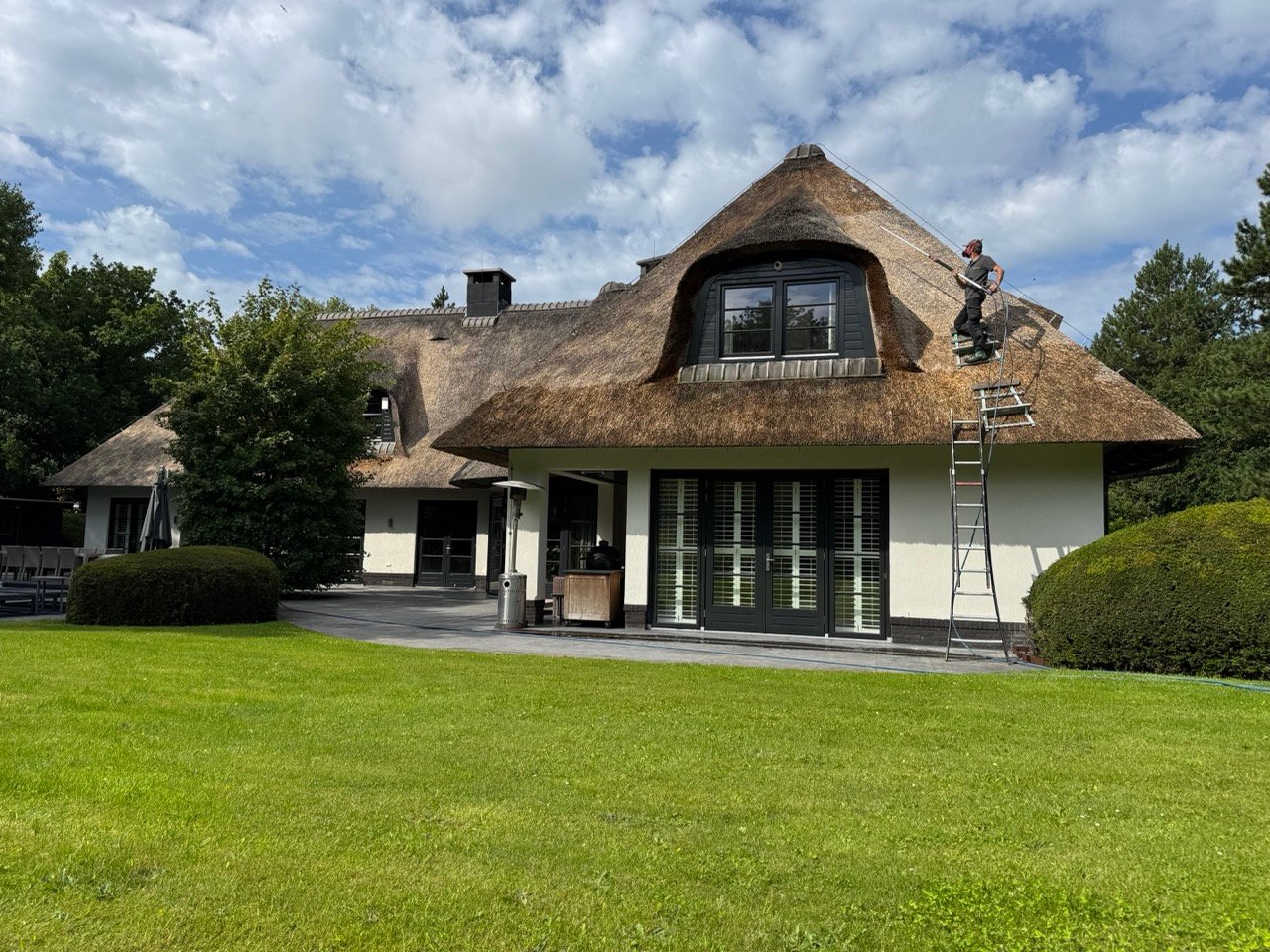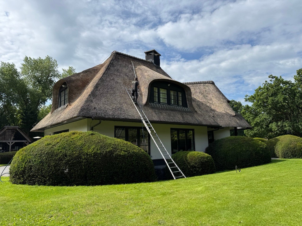We hebben in Aerdenhout een rieten dak zorgvuldig ingespoten. De behandeling verlengt de levensduur én behoudt het natuurlijke karakter van het dak.