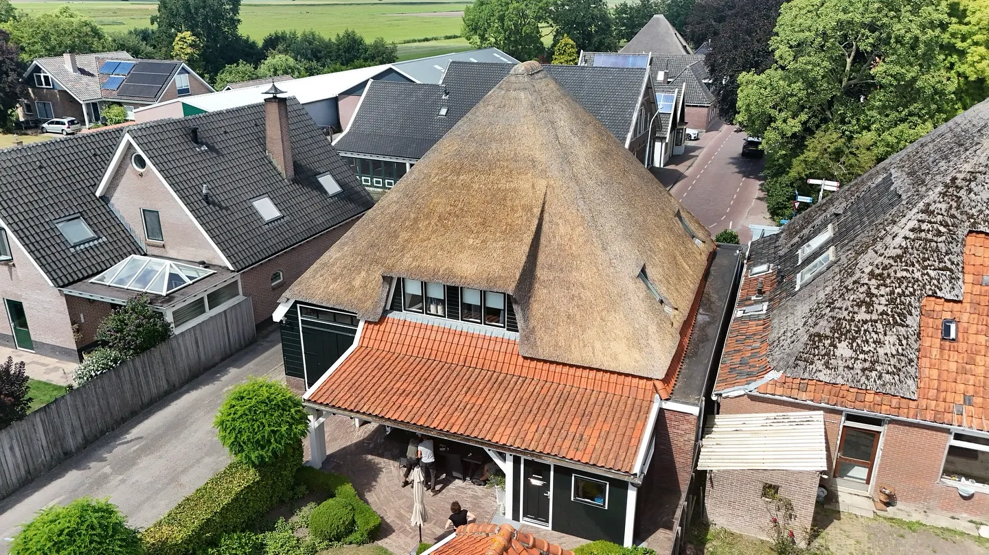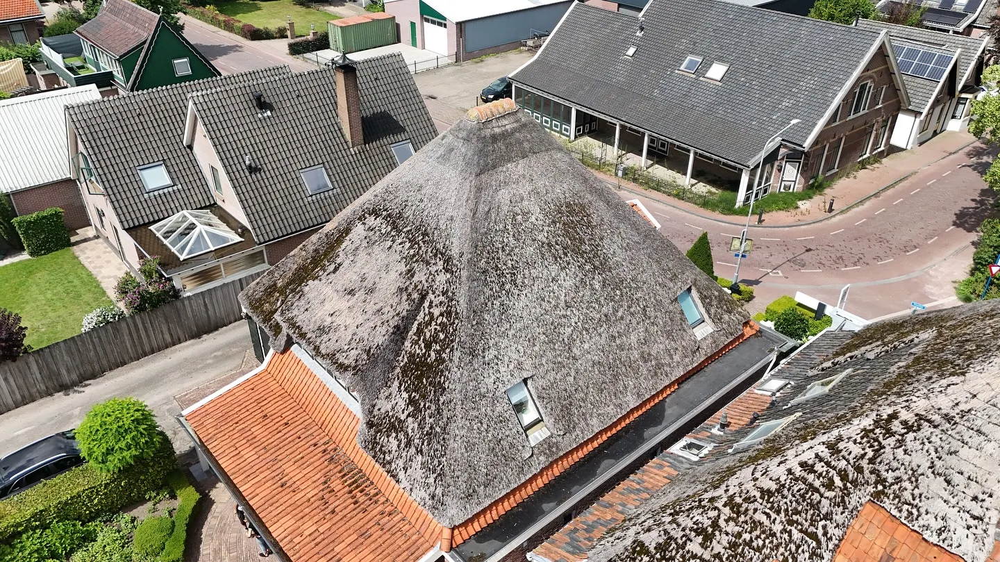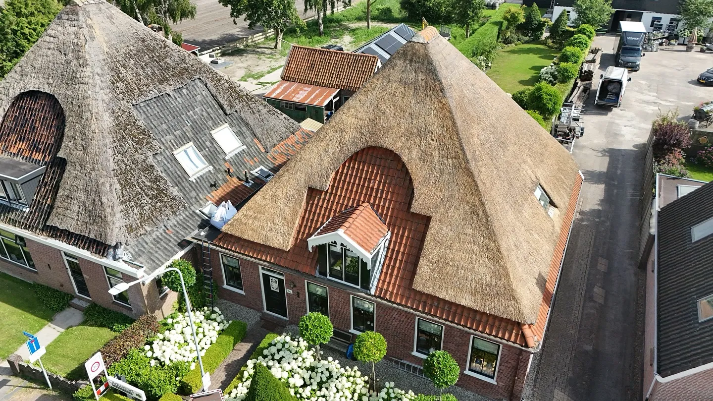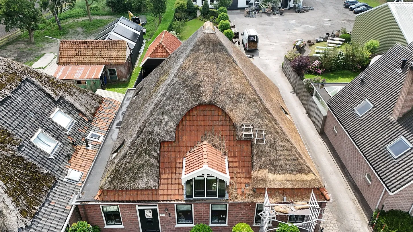 Daarnaast is het dak bijgestoken met vers riet op de plekken waar slijtage was ontstaan. Dit verlengt de levensduur en zorgt ervoor dat het dak weer egaal en verzorgd oogt.